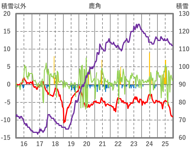 | 日 | 時 | 気温 | 降水 | 風向/風速 | 日照 | 積雪 | 降雪 |