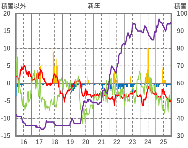 | 日 | 時 | 気温 | 降水 | 風向/風速 | 日照 | 積雪 | 降雪 |
