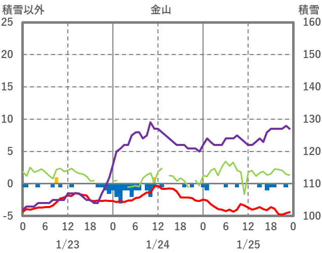 | 日 | 時 | 気温 | 降水 | 風向/風速 | 日照 | 積雪 | 降雪 |