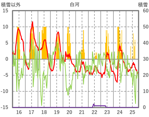 | 日 | 時 | 気温 | 降水 | 風向/風速 | 日照 | 積雪 | 降雪 |