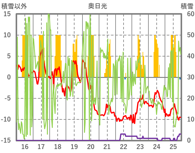 | 日 | 時 | 気温 | 降水 | 風向/風速 | 日照 | 積雪 | 降雪 |