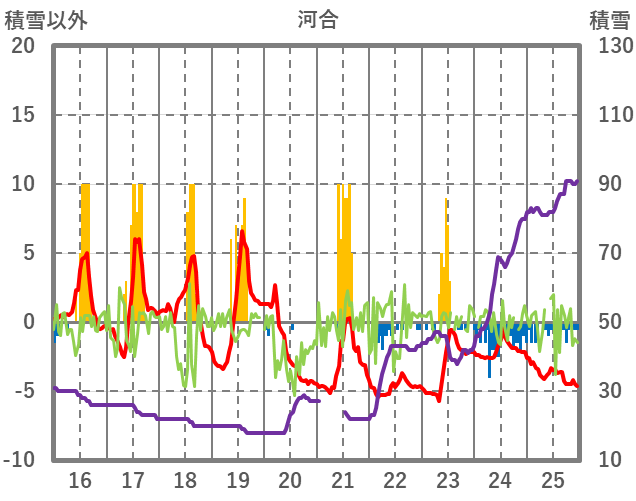 | 日 | 時 | 気温 | 降水 | 風向/風速 | 日照 | 積雪 | 降雪 |