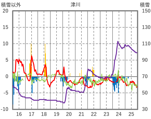 | 日 | 時 | 気温 | 降水 | 風向/風速 | 日照 | 積雪 | 降雪 |