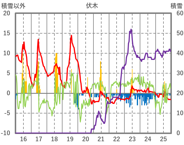| 日 | 時 | 気温 | 降水 | 風向/風速 | 日照 | 積雪 | 降雪 |