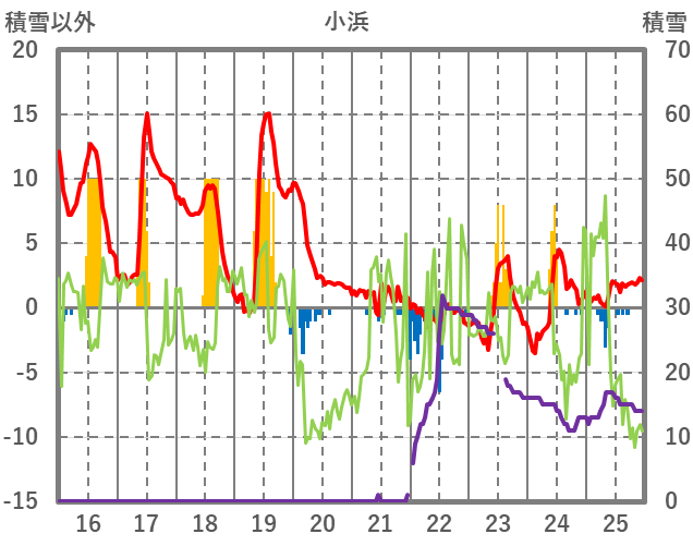 | 日 | 時 | 気温 | 降水 | 風向/風速 | 日照 | 積雪 | 降雪 |