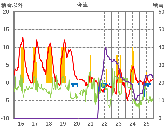 | 日 | 時 | 気温 | 降水 | 風向/風速 | 日照 | 積雪 | 降雪 |