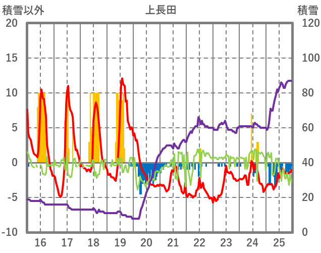| 日 | 時 | 気温 | 降水 | 風向/風速 | 日照 | 積雪 | 降雪 |