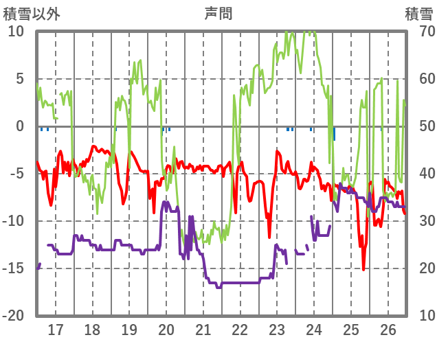 | 15 | -4.8 | 0 | NNE/6 | 32 | -1 | ||