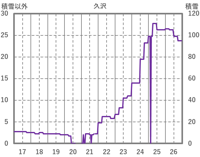 | 日 | 時 | 気温 | 降水 | 風向/風速 | 日照 | 積雪 | 降雪 |