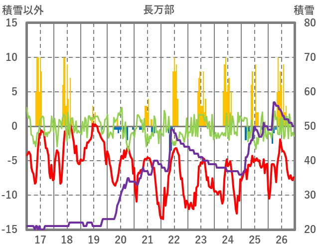 | 日 | 時 | 気温 | 降水 | 風向/風速 | 日照 | 積雪 | 降雪 |