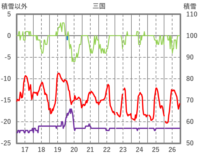 | 日 | 時 | 気温 | 降水 | 風向/風速 | 日照 | 積雪 | 降雪 |