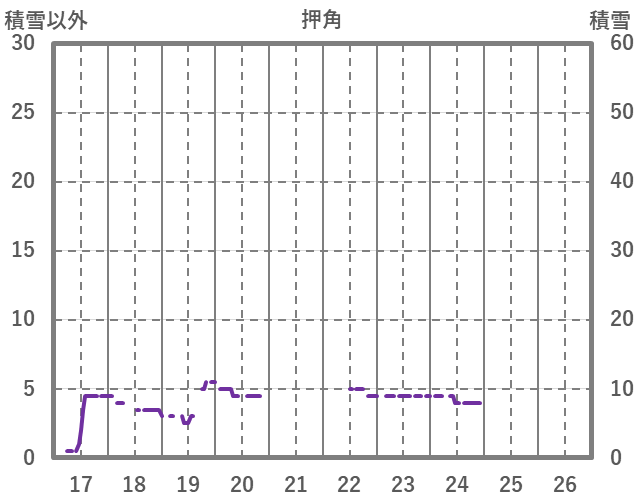 | 日 | 時 | 気温 | 降水 | 風向/風速 | 日照 | 積雪 | 降雪 |