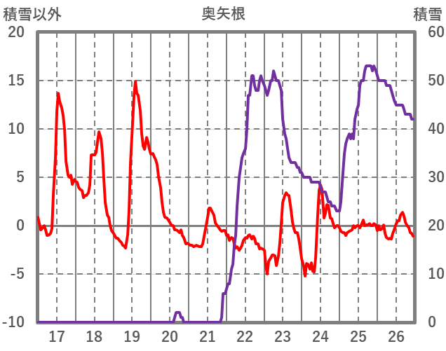 | 日 | 時 | 気温 | 降水 | 風向/風速 | 日照 | 積雪 | 降雪 |