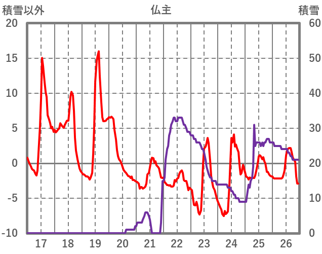 | 日 | 時 | 気温 | 降水 | 風向/風速 | 日照 | 積雪 | 降雪 |
