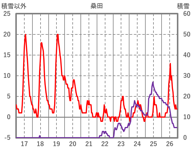 | 日 | 時 | 気温 | 降水 | 風向/風速 | 日照 | 積雪 | 降雪 |