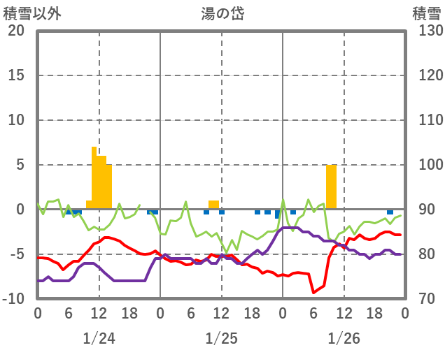 | 日 | 時 | 気温 | 降水 | 風向/風速 | 日照 | 積雪 | 降雪 |