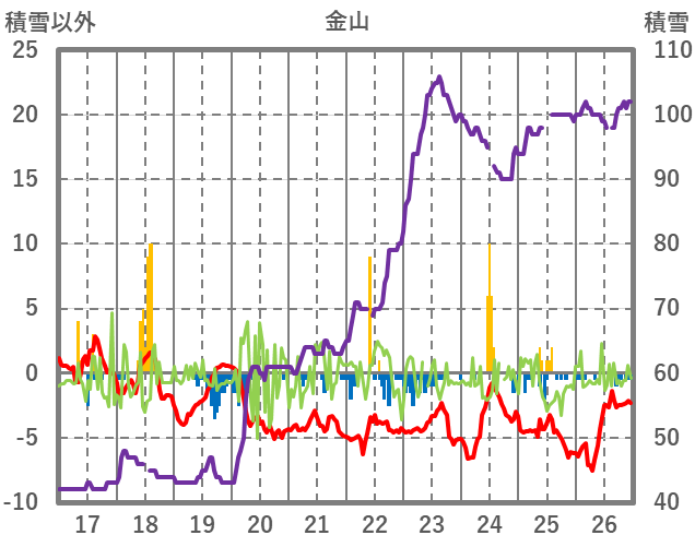 | 日 | 時 | 気温 | 降水 | 風向/風速 | 日照 | 積雪 | 降雪 |