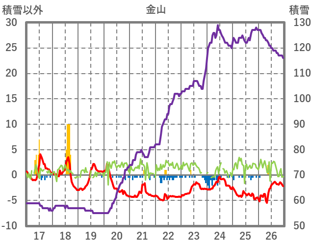 | 日 | 時 | 気温 | 降水 | 風向/風速 | 日照 | 積雪 | 降雪 |