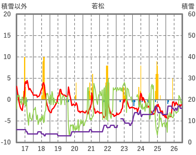 | 日 | 時 | 気温 | 降水 | 風向/風速 | 日照 | 積雪 | 降雪 |