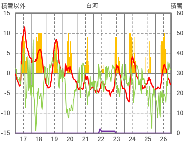 | 日 | 時 | 気温 | 降水 | 風向/風速 | 日照 | 積雪 | 降雪 |