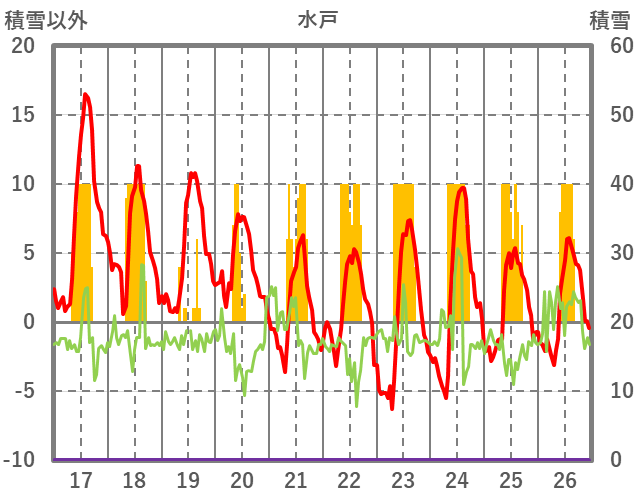 | 日 | 時 | 気温 | 降水 | 風向/風速 | 日照 | 積雪 | 降雪 |