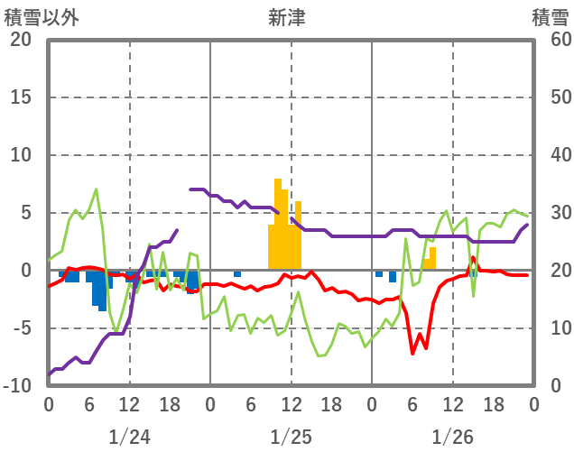 | 日 | 時 | 気温 | 降水 | 風向/風速 | 日照 | 積雪 | 降雪 |