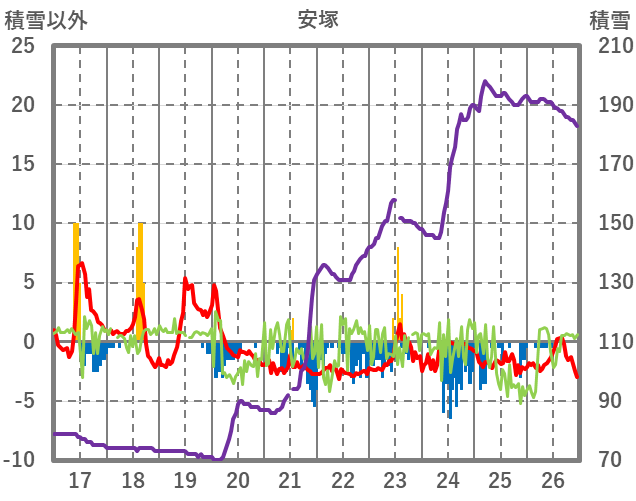 | 日 | 時 | 気温 | 降水 | 風向/風速 | 日照 | 積雪 | 降雪 |