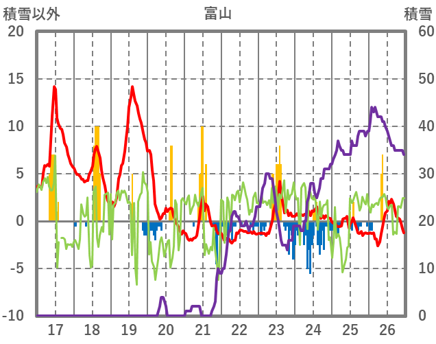 | 日 | 時 | 気温 | 降水 | 風向/風速 | 日照 | 積雪 | 降雪 |