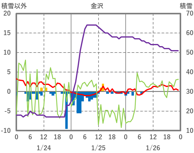 | 日 | 時 | 気温 | 降水 | 風向/風速 | 日照 | 積雪 | 降雪 |