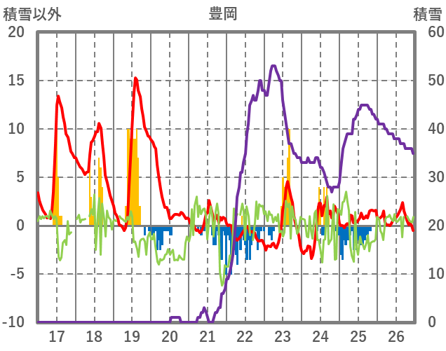 | 日 | 時 | 気温 | 降水 | 風向/風速 | 日照 | 積雪 | 降雪 |