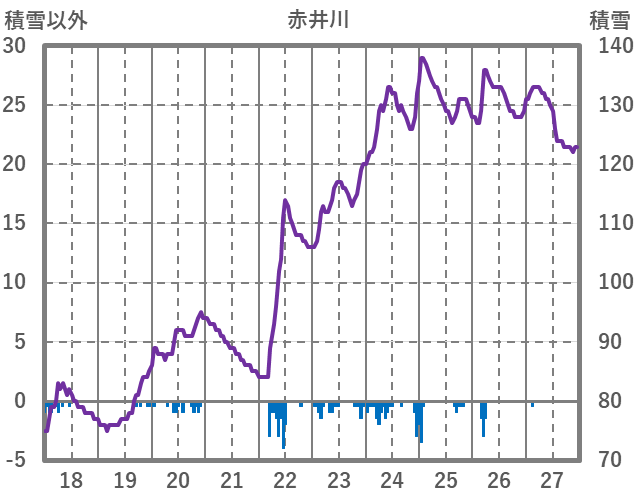 | 日 | 時 | 気温 | 降水 | 風向/風速 | 日照 | 積雪 | 降雪 |