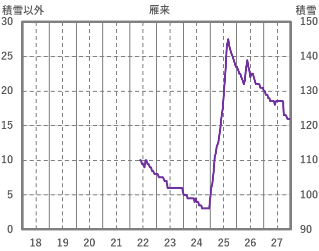 | 日 | 時 | 気温 | 降水 | 風向/風速 | 日照 | 積雪 | 降雪 |