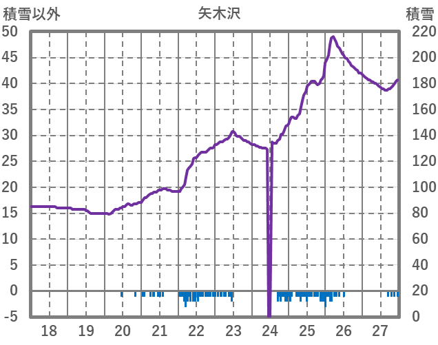 | 日 | 時 | 気温 | 降水 | 風向/風速 | 日照 | 積雪 | 降雪 |