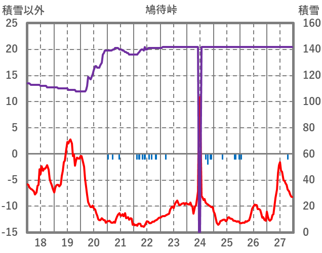 | 日 | 時 | 気温 | 降水 | 風向/風速 | 日照 | 積雪 | 降雪 |