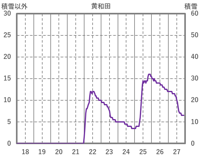 | 日 | 時 | 気温 | 降水 | 風向/風速 | 日照 | 積雪 | 降雪 |