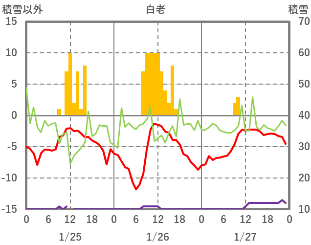 | 日 | 時 | 気温 | 降水 | 風向/風速 | 日照 | 積雪 | 降雪 |