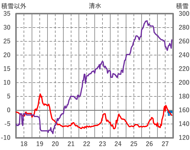 | 日 | 時 | 気温 | 降水 | 風向/風速 | 日照 | 積雪 | 降雪 |