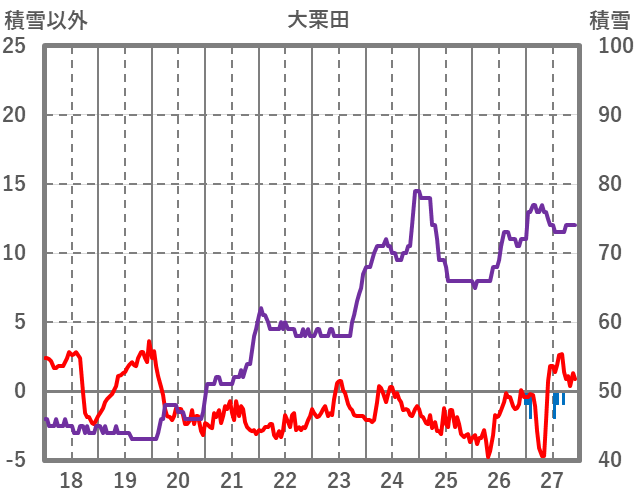 | 日 | 時 | 気温 | 降水 | 風向/風速 | 日照 | 積雪 | 降雪 |