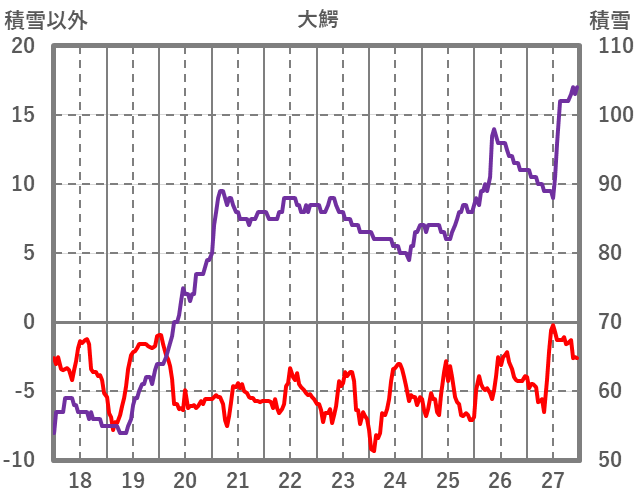 | 日 | 時 | 気温 | 降水 | 風向/風速 | 日照 | 積雪 | 降雪 |
