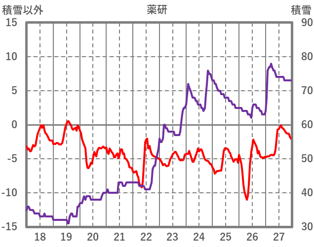 | 日 | 時 | 気温 | 降水 | 風向/風速 | 日照 | 積雪 | 降雪 |