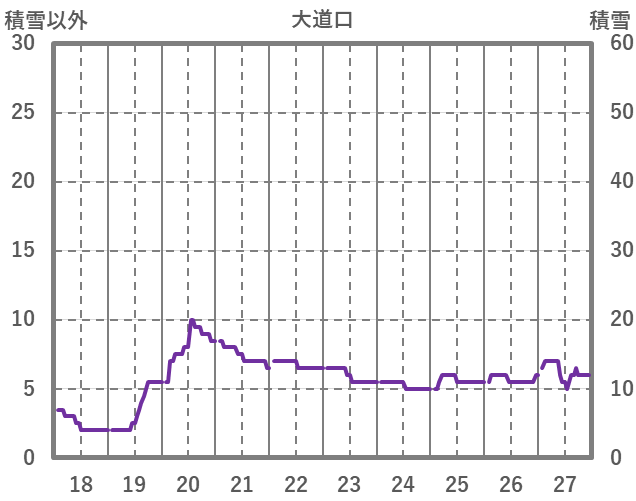 | 日 | 時 | 気温 | 降水 | 風向/風速 | 日照 | 積雪 | 降雪 |