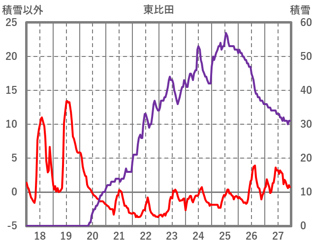 | 日 | 時 | 気温 | 降水 | 風向/風速 | 日照 | 積雪 | 降雪 |