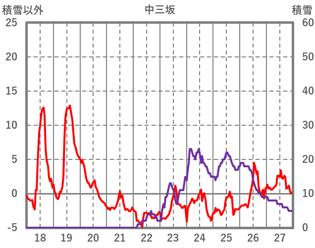 | 日 | 時 | 気温 | 降水 | 風向/風速 | 日照 | 積雪 | 降雪 |