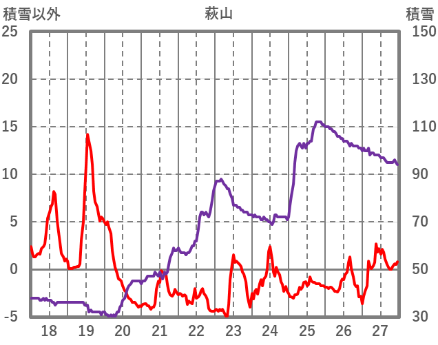 | 日 | 時 | 気温 | 降水 | 風向/風速 | 日照 | 積雪 | 降雪 |