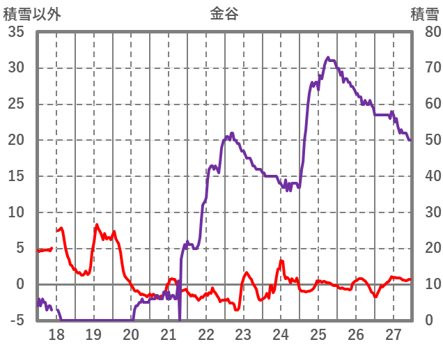 | 日 | 時 | 気温 | 降水 | 風向/風速 | 日照 | 積雪 | 降雪 |