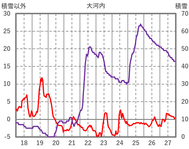 | 日 | 時 | 気温 | 降水 | 風向/風速 | 日照 | 積雪 | 降雪 |