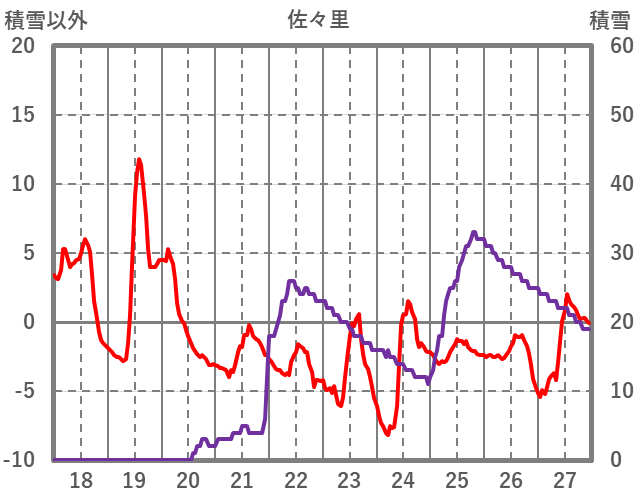 | 日 | 時 | 気温 | 降水 | 風向/風速 | 日照 | 積雪 | 降雪 |