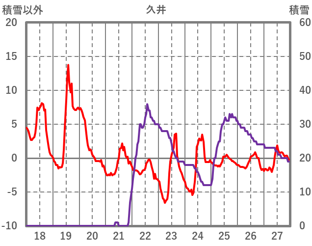 | 日 | 時 | 気温 | 降水 | 風向/風速 | 日照 | 積雪 | 降雪 |