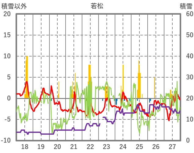 | 日 | 時 | 気温 | 降水 | 風向/風速 | 日照 | 積雪 | 降雪 |
