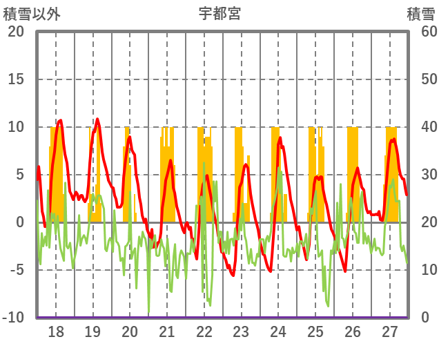 | 日 | 時 | 気温 | 降水 | 風向/風速 | 日照 | 積雪 | 降雪 |